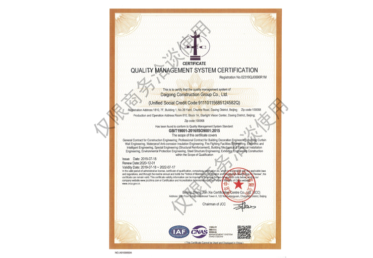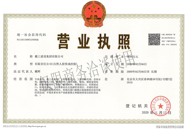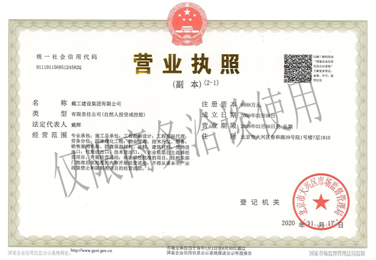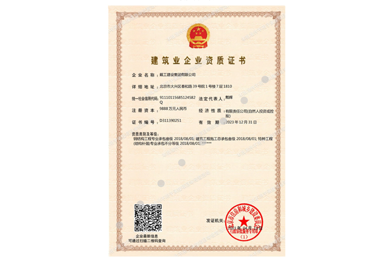 戴工建設集團有限公司,創(chuàng)建于2009年,注冊資本9888萬元人民幣。公司位于北京市大興區(qū)。具有建委頒發(fā)的建筑裝飾裝修專業(yè)壹級,防水保溫工程專業(yè)壹級,建筑幕墻專業(yè)貳級,消防設施專業(yè)貳級,電子與智能化專業(yè)貳級,特種工程(結構補強)專業(yè)不分等級,建筑機電安裝專業(yè)貳級,環(huán)保工程專業(yè)貳級,鋼結構專業(yè)貳級,建筑工程總承包貳級,建筑裝飾工程設計專項甲級,展覽陳列工程設計與施工壹級,展覽展示工程壹級...更多>>
